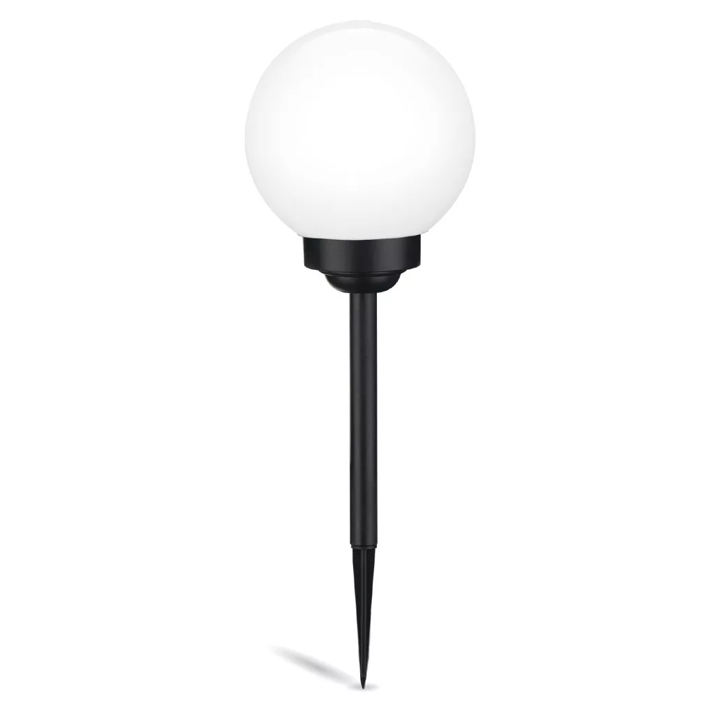 Napelemes kerti lámpa LED ATRIS földre szerelhető fehér golyós 25cm RGB LUMILED