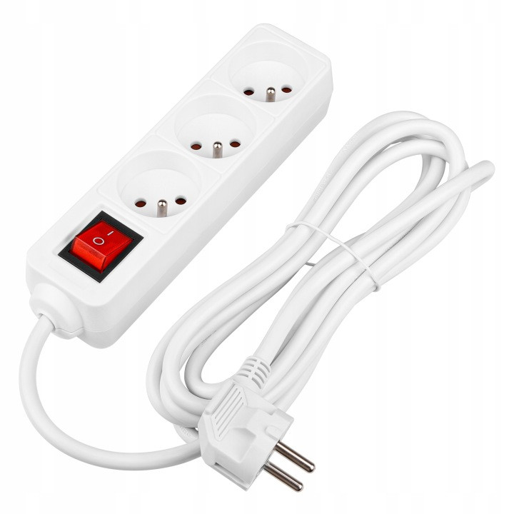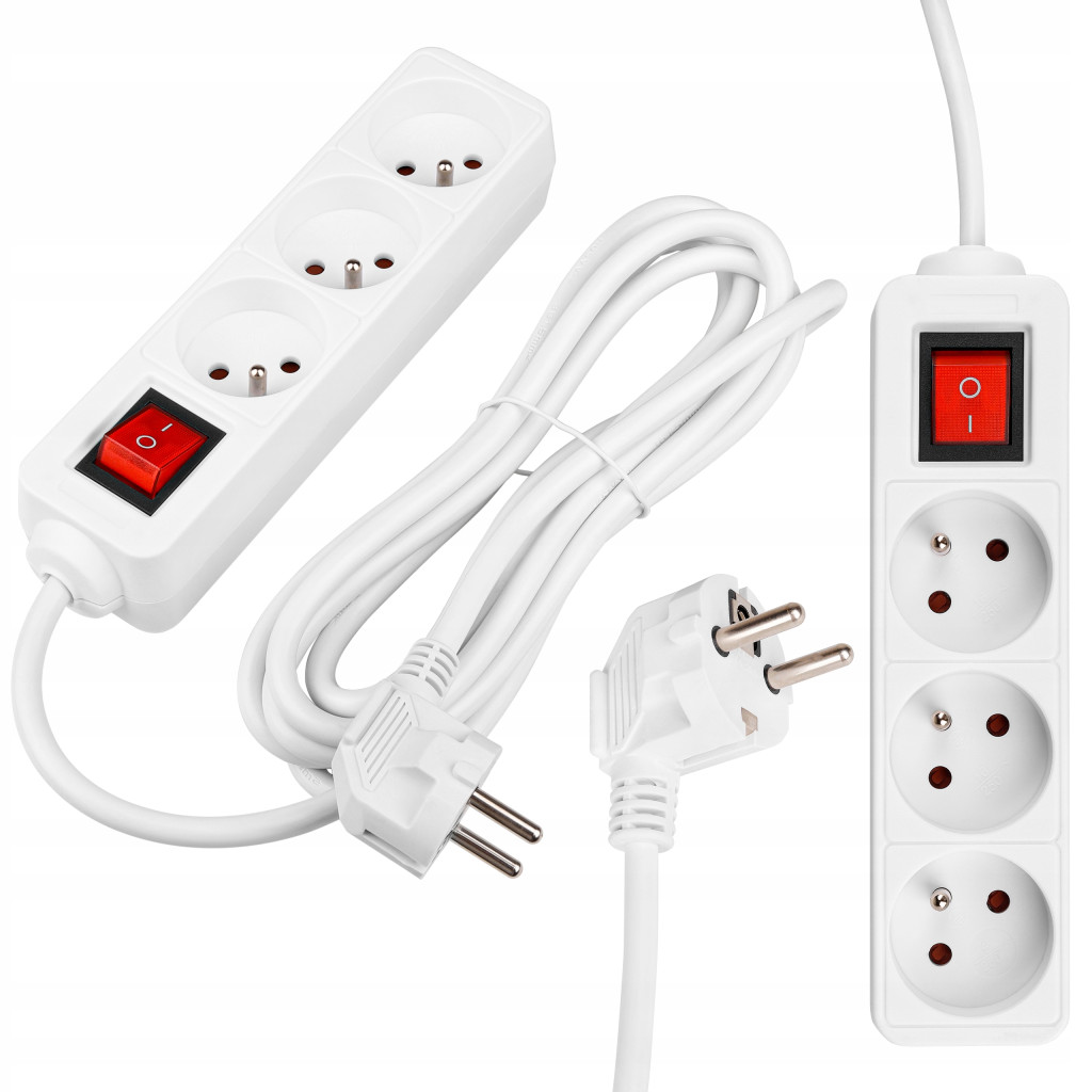 Hálózati Hosszabbító Kábel 3x Aljzat Ki/Be Kapcsoló 3m Fehér Masterled