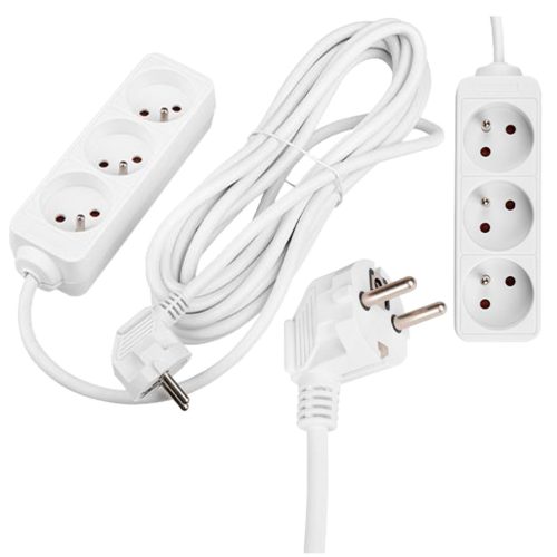 Hálózati Hosszabbító Kábel 3x Aljzat 5m Fehér Masterled