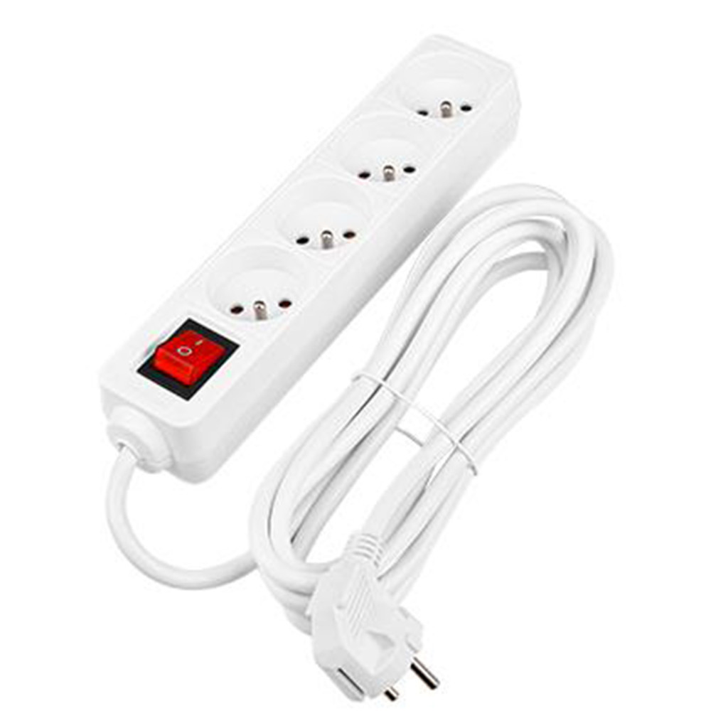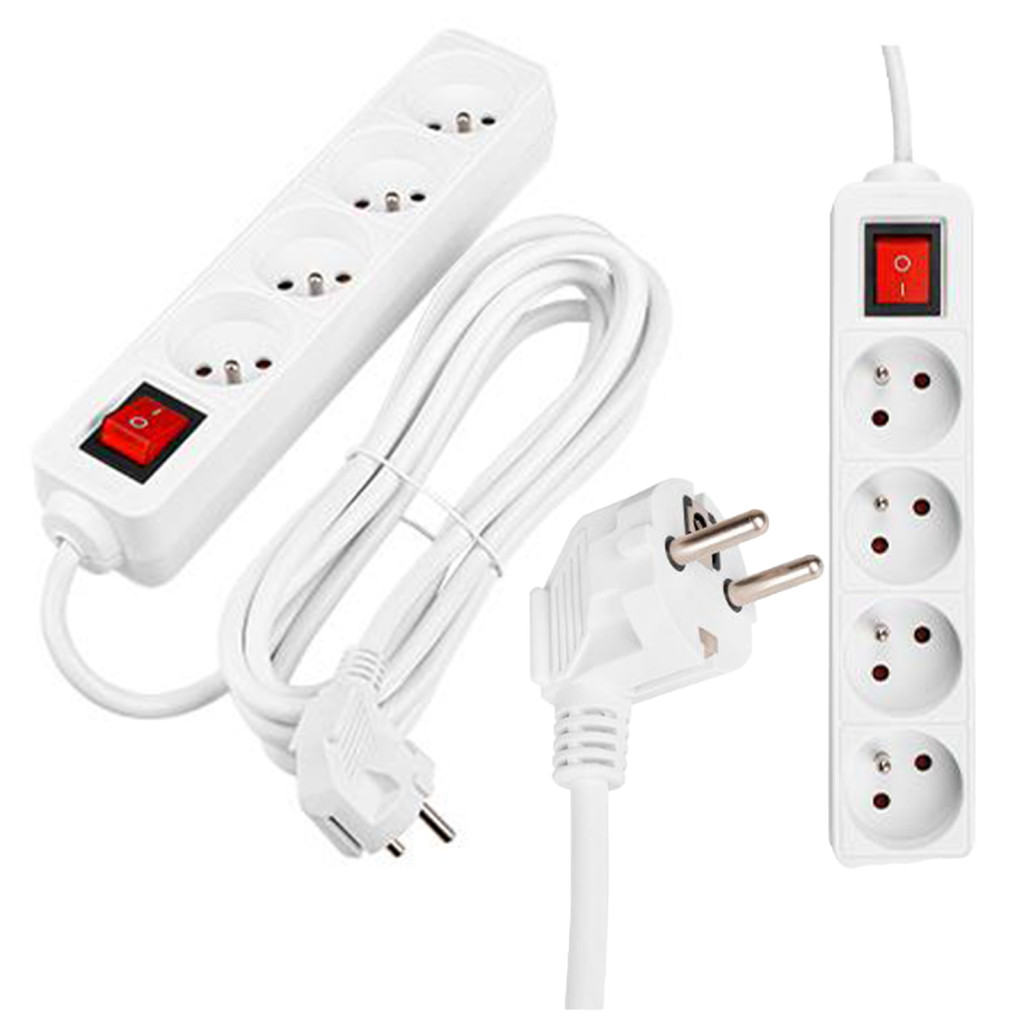 Hálózati Hosszabbító Kábel 4x Aljzat Ki/Be Kapcsoló 3m Fehér Masterled