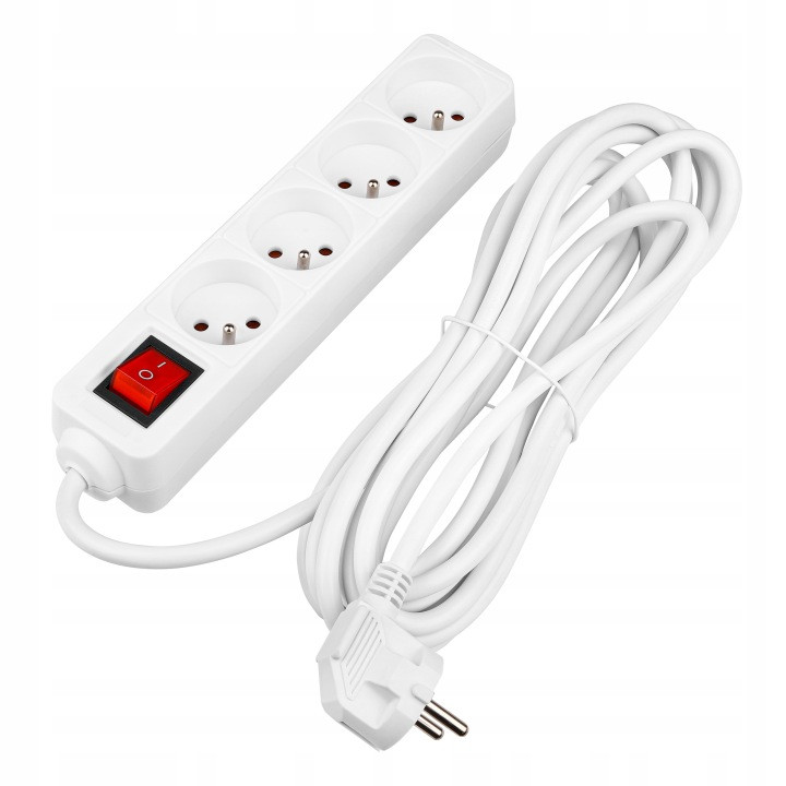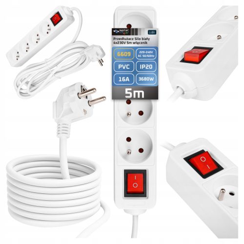 Hálózati Hosszabbító Kábel 4x Aljzat Ki/Be Kapcsoló 5m Fehér Masterled