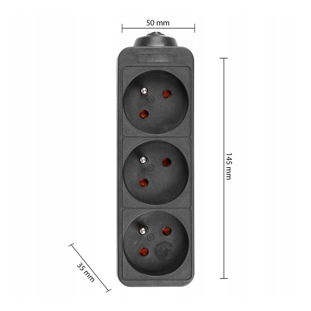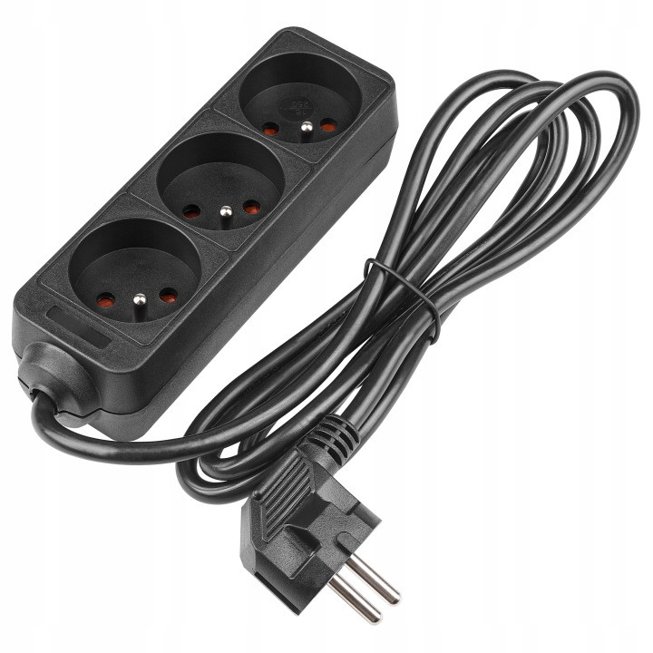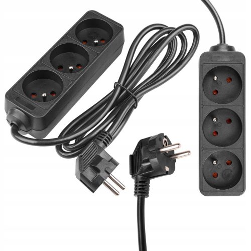 Hálózati Hosszabbító Kábel 3x Aljzat 1.5m Fekete Masterled