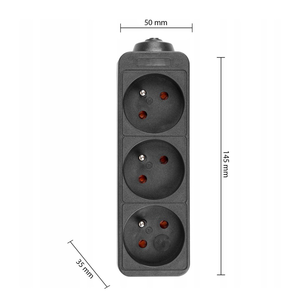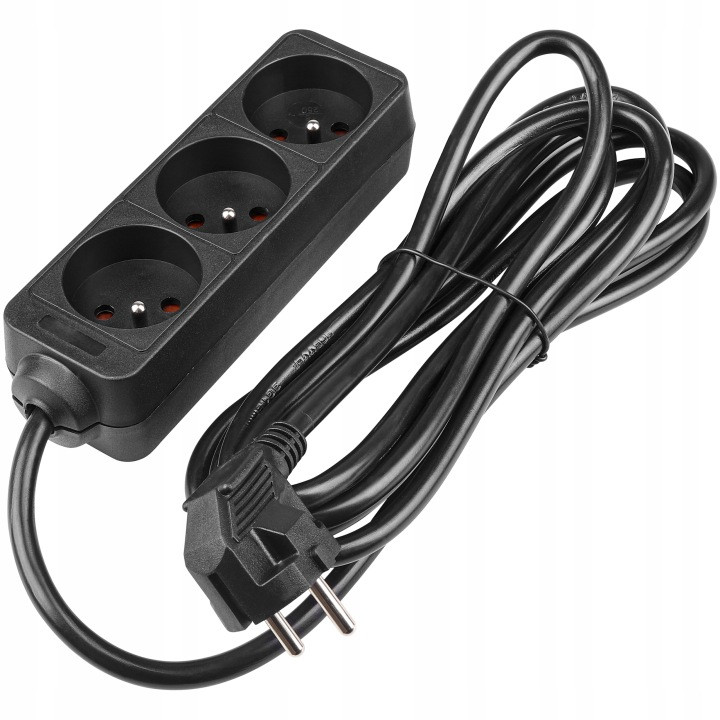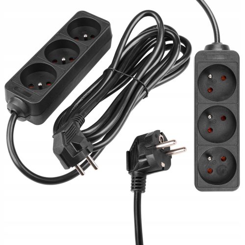 Masterled 3 csatlakozós hosszabbító kábel, 3 aljzat, 3 m, fekete