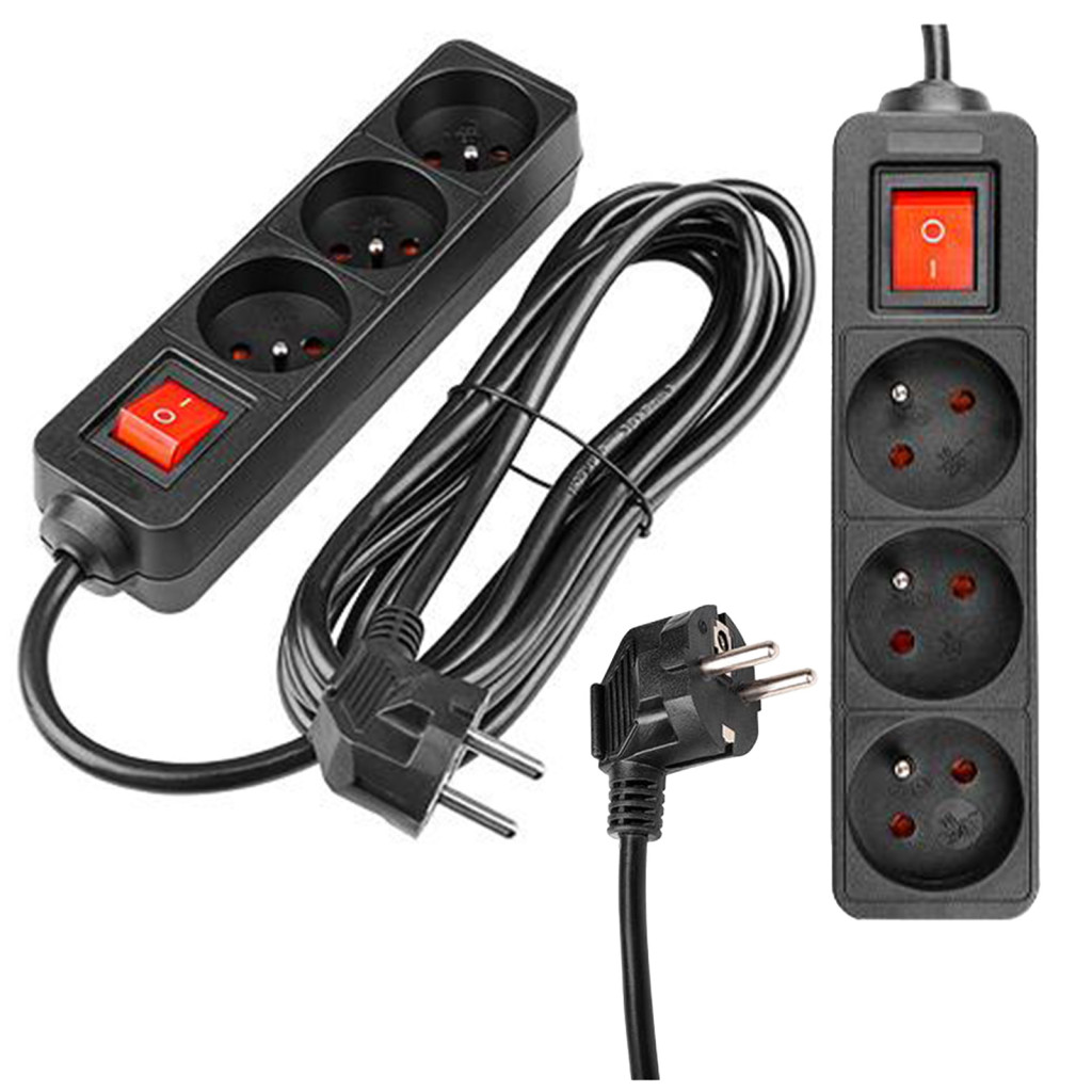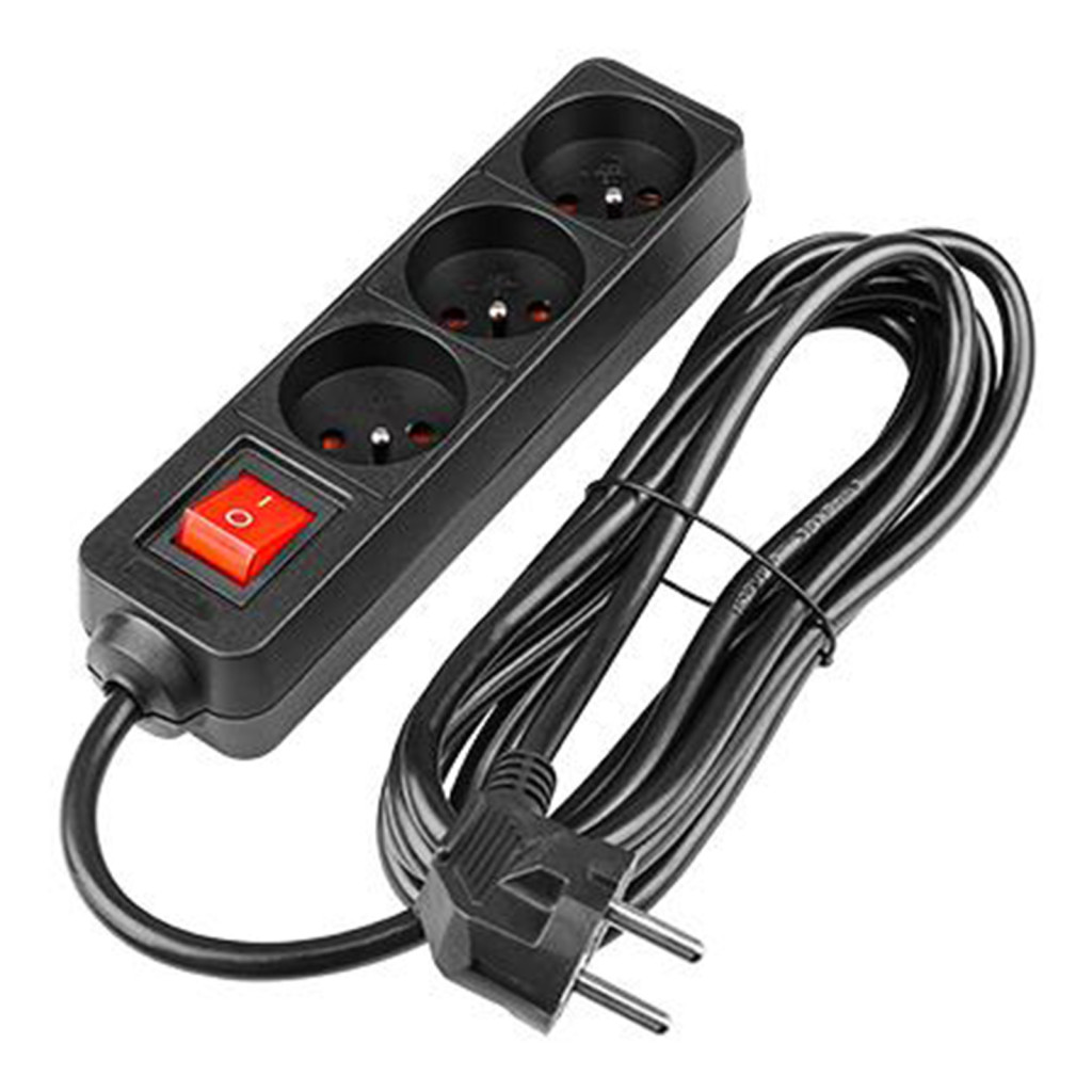 Hálózati Hosszabbító Kábel 3x Aljzat Ki/Be Kapcsoló 3m Fekete Masterled