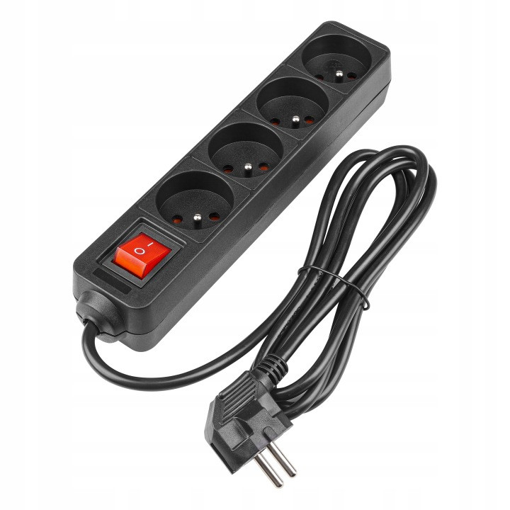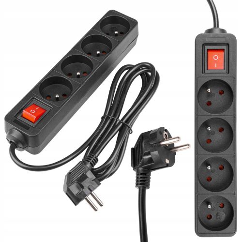 Hálózati Hosszabbító Kábel 4x Aljzat Ki/Be Kapcsoló 1.5m Fekete Masterled