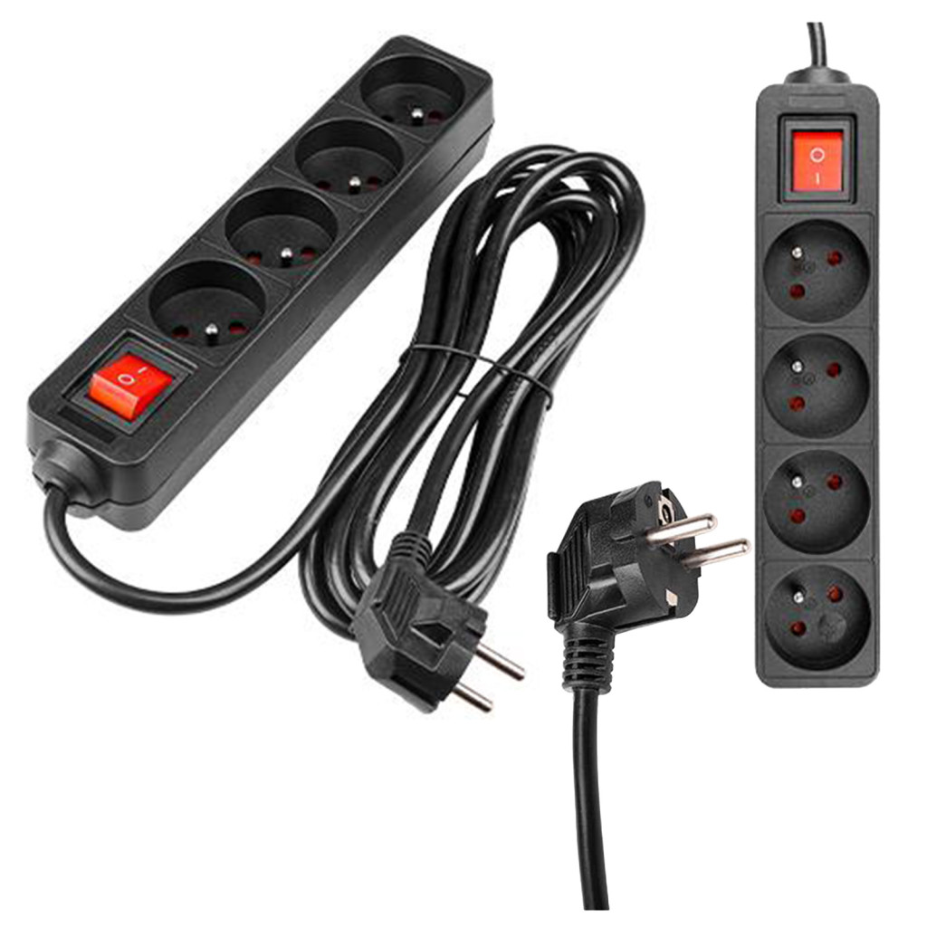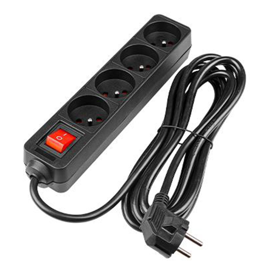Hálózati Hosszabbító Kábel 4x Aljzat Ki/Be Kapcsoló 3m Fekete Masterled