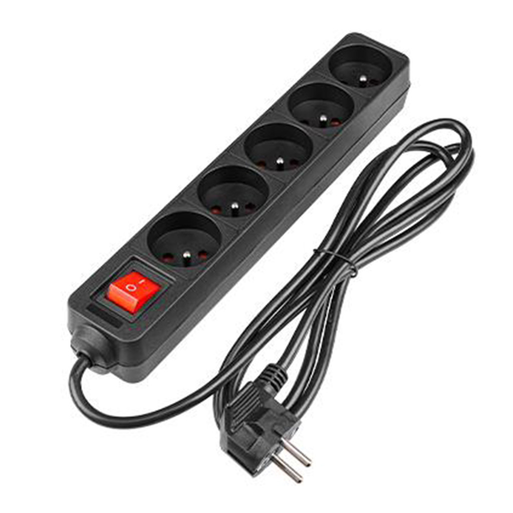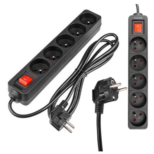 Hálózati Hosszabbító Kábel 5x Aljzat Ki/Be Kapcsoló 1.5m Fekete Masterled