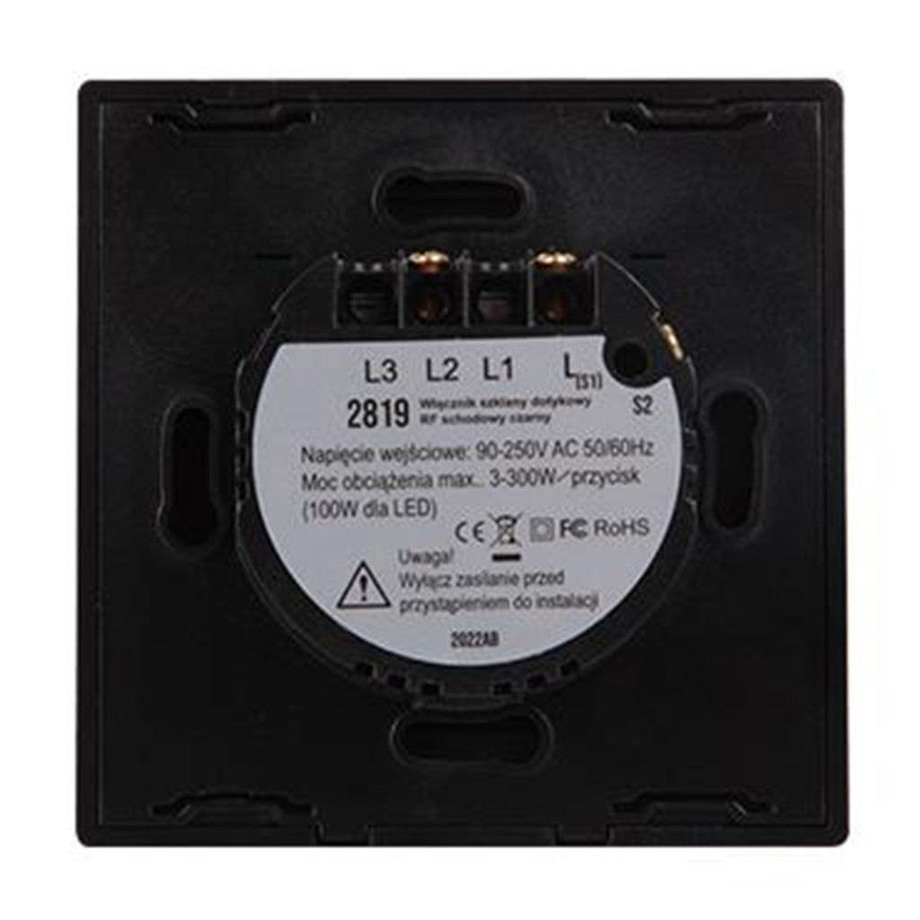 Üveg érintőkapcsoló, egy RF lépcsőkapcsoló, fekete távirányítóval, IP54, Masterled