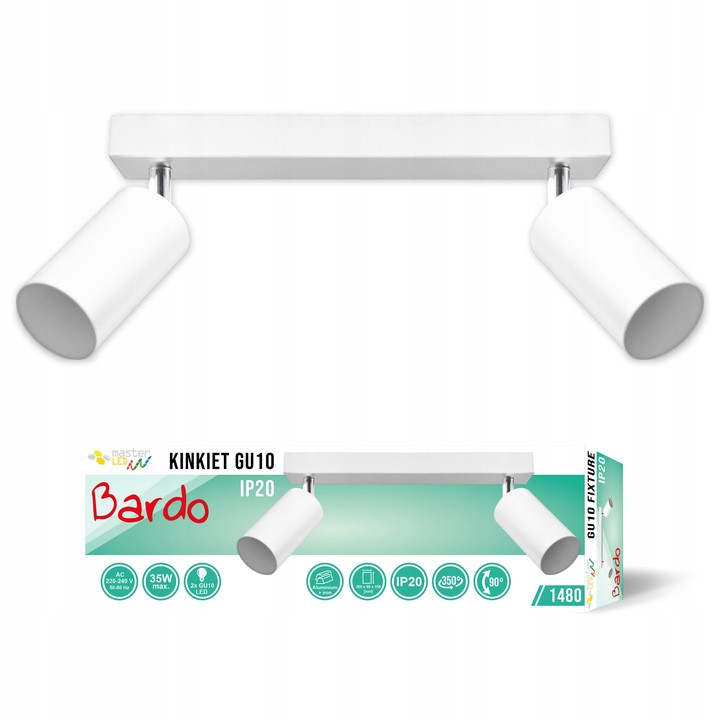 Fali lámpa, felületre szerelhető, 2x GU10, matt fehér króm, Bardo, Masterled