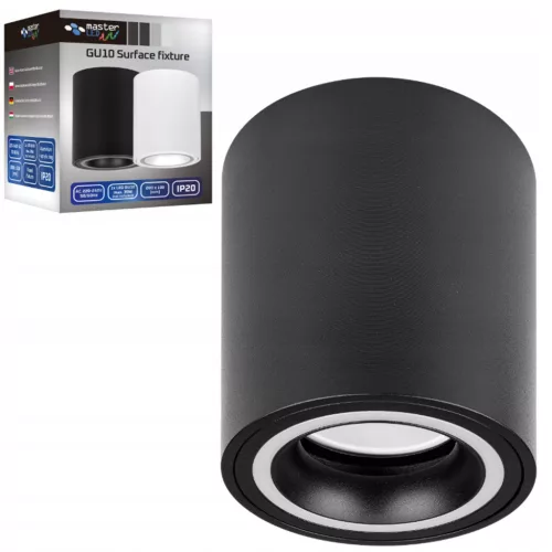 Felületre szerelhető halogéncsöves spotlámpa GU10, kerek, fekete, Masterled