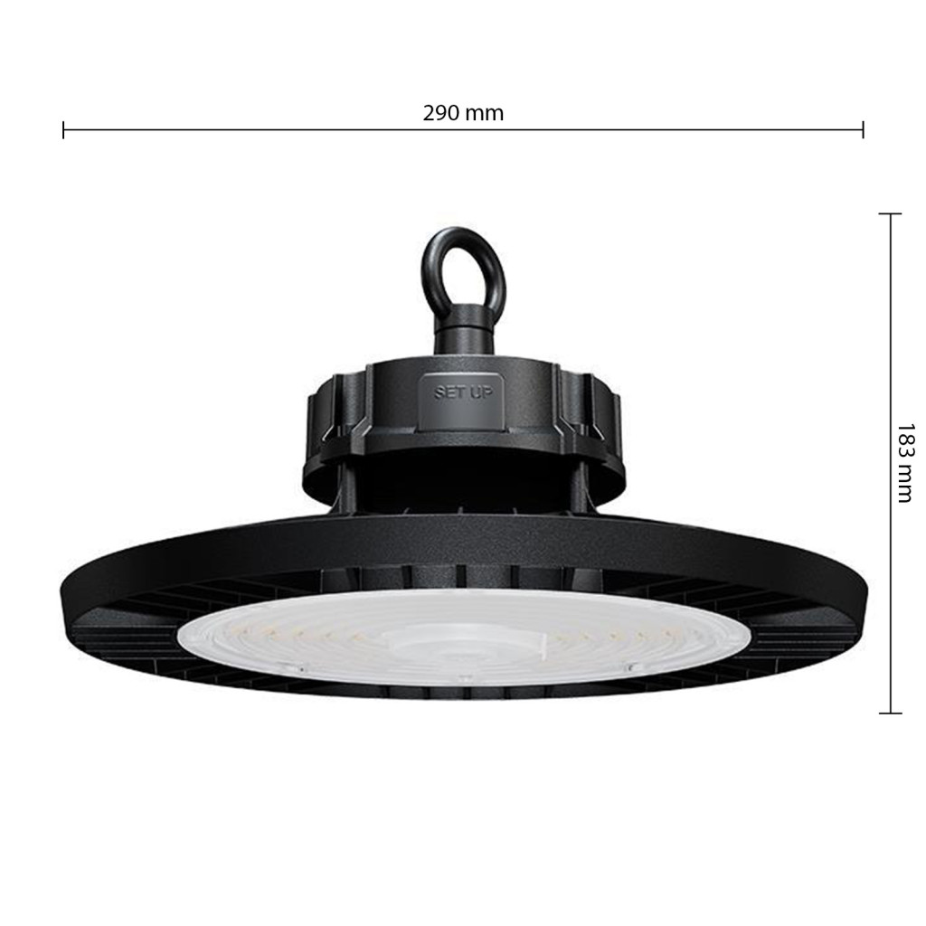 LED ipari magasbalátó lámpa 200W 30000lm 4000K Semleges 90° Szabályozható fekete IP65 Masterled