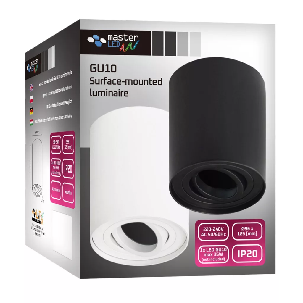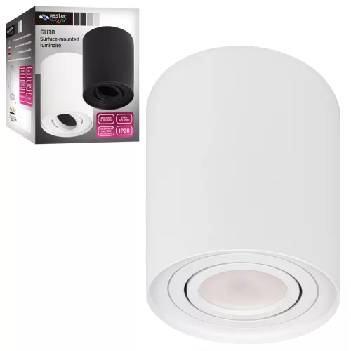 Felületre szerelhető halogéncsöves spotlámpa GU10 kerek, mozgatható fehér, Masterled