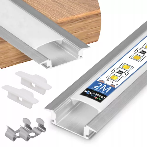 Masterled ezüst eloxált alumínium LED szalagprofil, süllyesztett, 2m