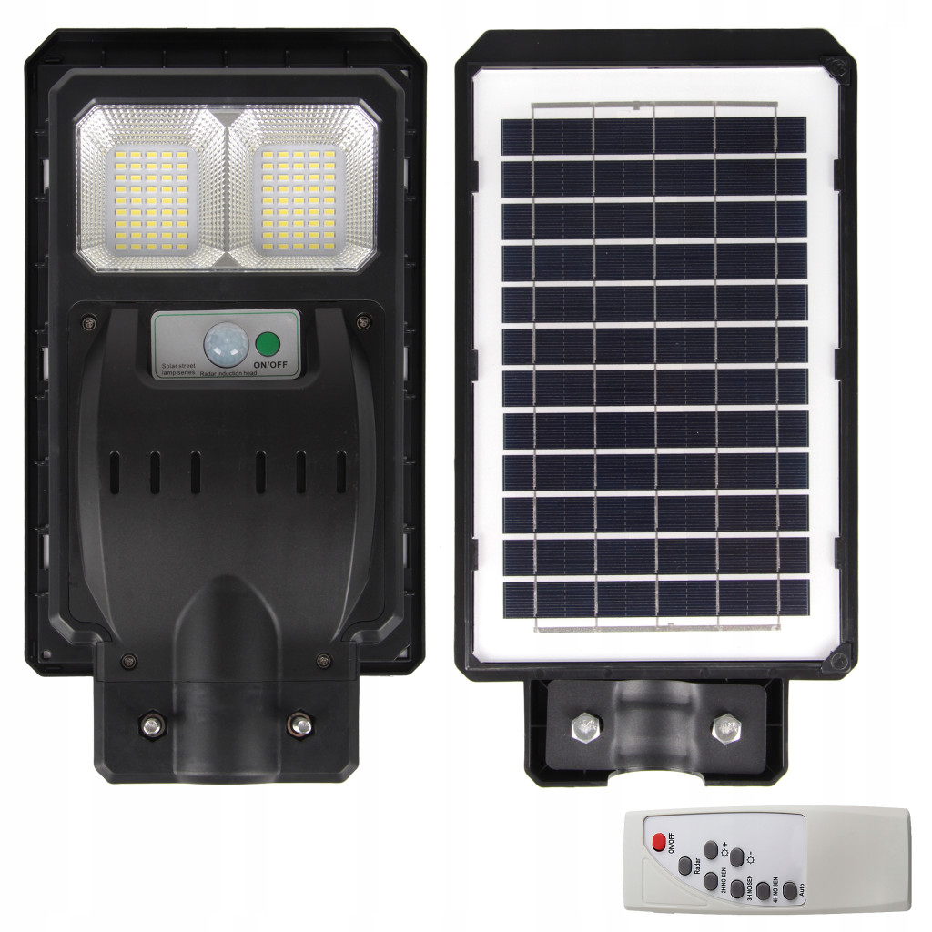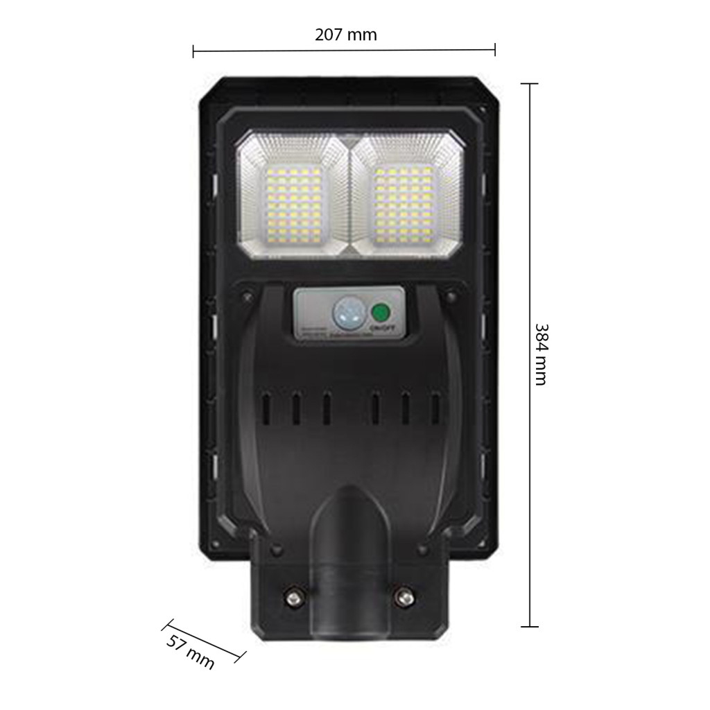Napelemes LED kerti utcai lámpa 100W 6000K Hidegfényű mozgás- és alkonykapcsolóval, fekete, IP65 Masterled