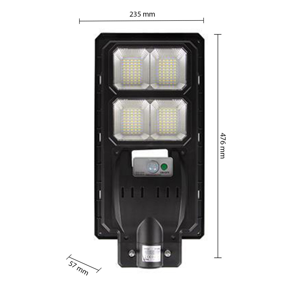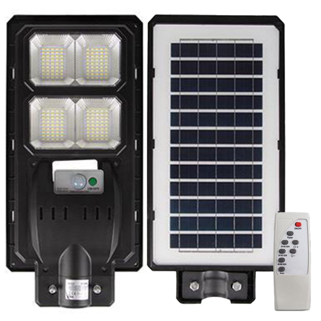 Napelemes LED kerti utcai lámpa 200W 6000K Hidegfényű mozgás- és alkonyérzékelővel, fekete IP65 Masterled