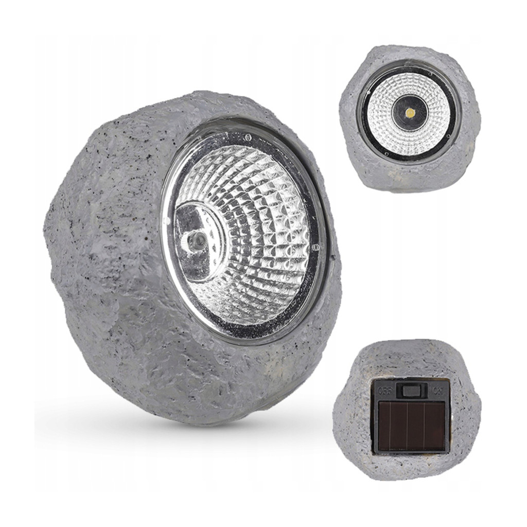 LED napelemes lámpa kerti kő SOLAR 6500K szürkületérzékelő kültéri használatra