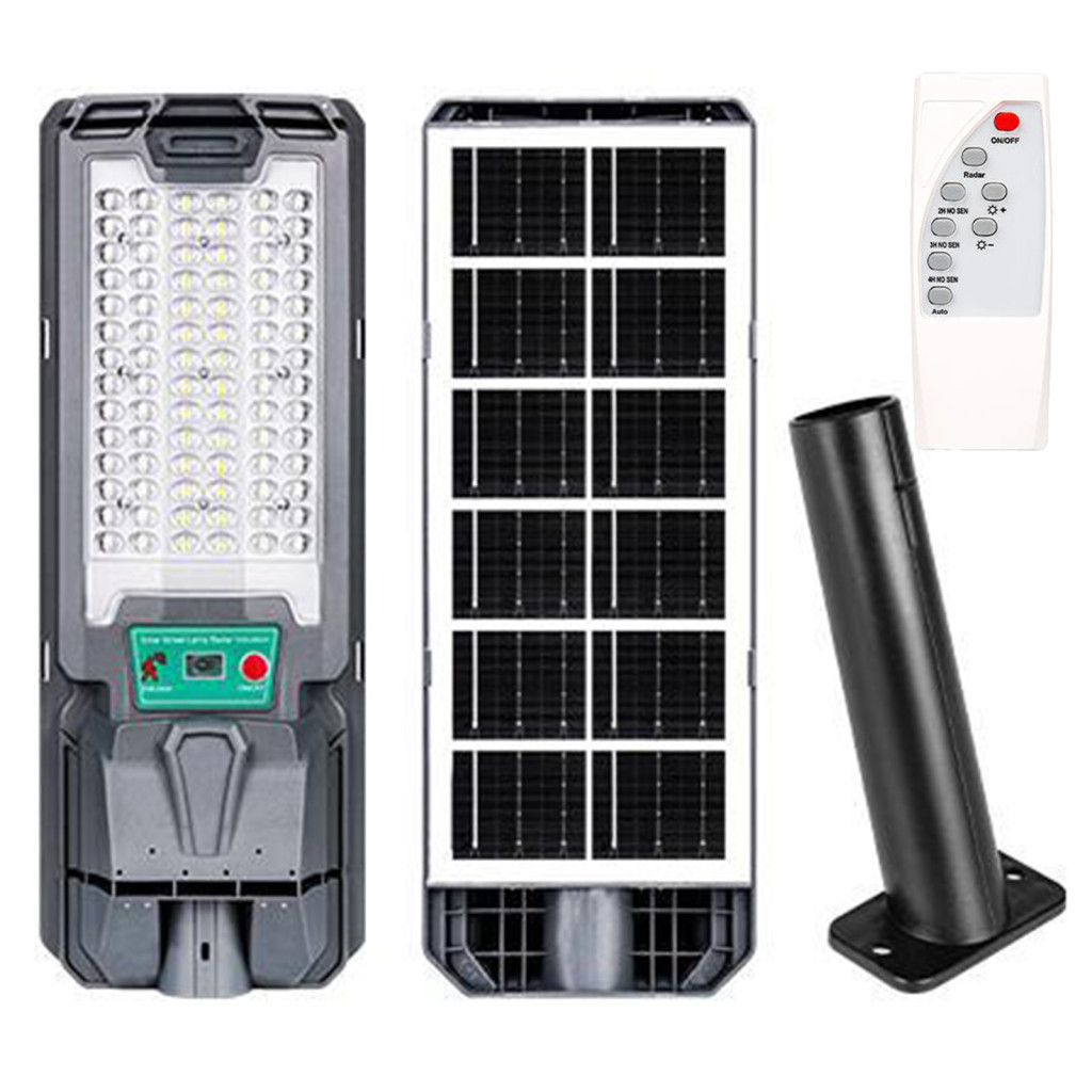 Napelemes LED utcai lámpa 50W 800lm 6000K Hideg 140° Mozgásérzékelővel Távirányítóval Szabályozható Fényerő Szürke IP65 Lix Masterled