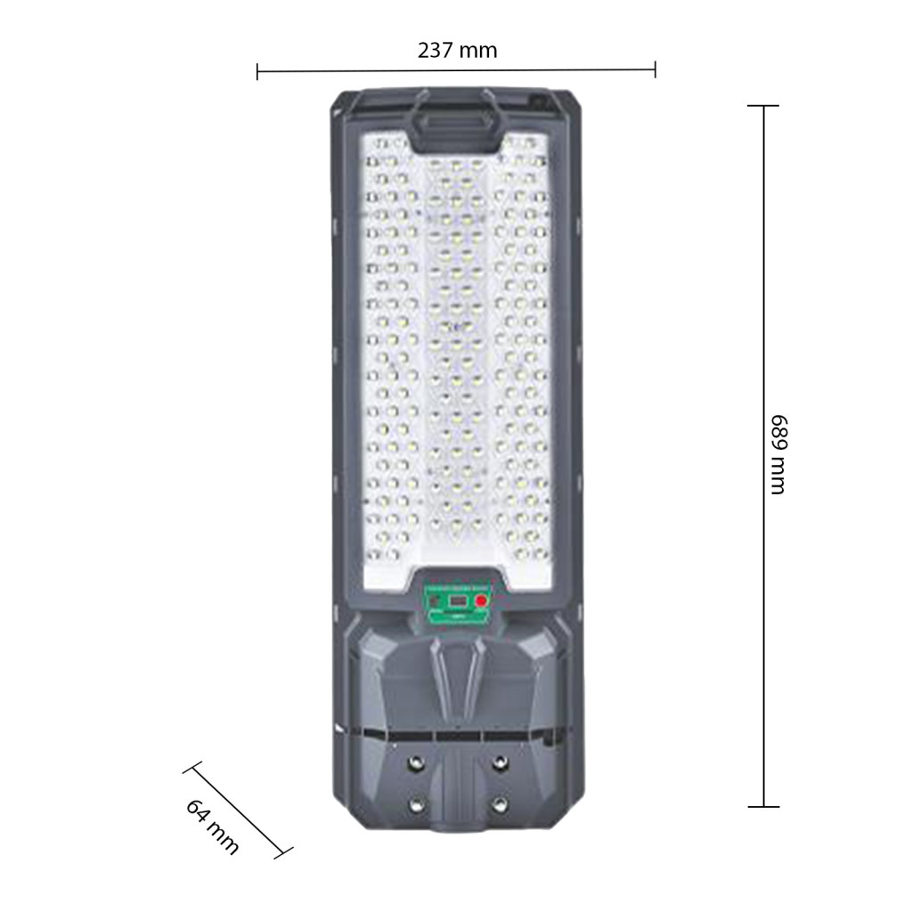 Napelemes LED utcai lámpa 300W 3900lm 6000K Hideg 140° Mozgásérzékelővel Távirányítóval Szabályozható Fényerő Szürke IP65 Lix Masterled
