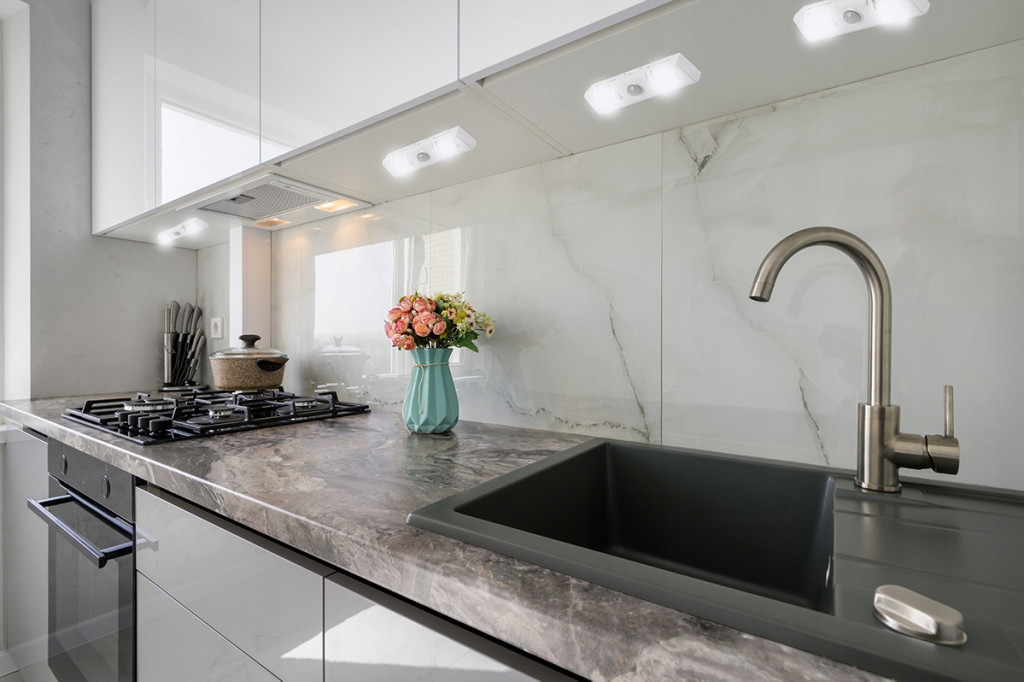 Öntapadó LED-es szekrény alatti lámpa mozgásérzékelővel, 4000K elem 2xAA, fehér