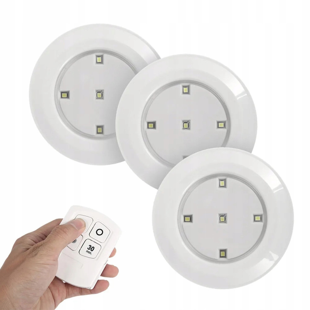 3x öntapadó LED-es szekrény alatti lámpa mozgásérzékelővel, 4000K elemmel 2xAAA fehér + távirányító