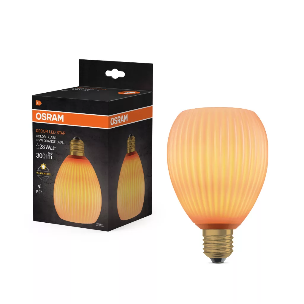 LED izzó E27 ovális 3.5W 300lm 2700K Meleg, dekoratív narancssárga Osram