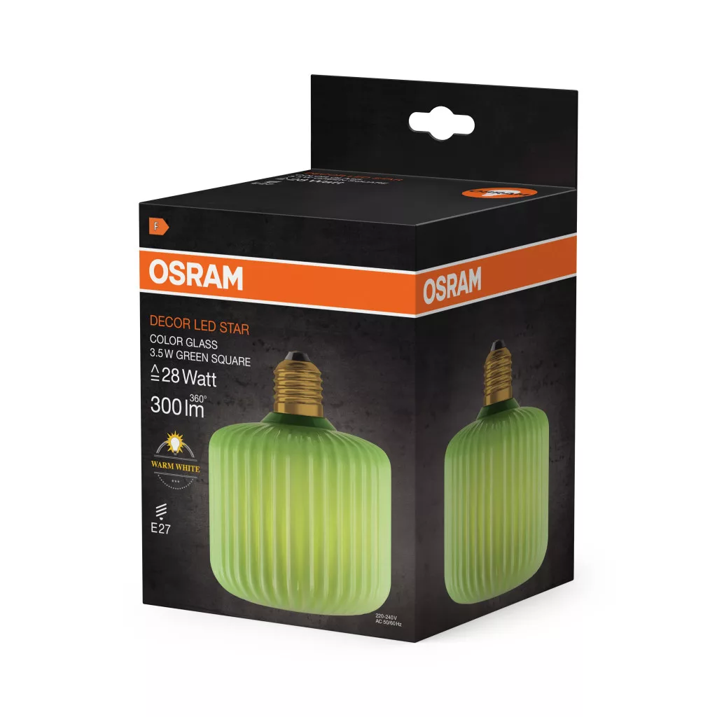 LED izzó E27 négyzet alakú 3,5 W 300 lm 2700 K meleg, dekoratív zöld Osram