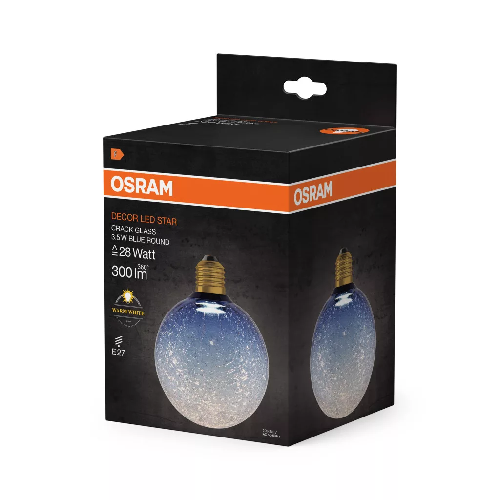 E27 LED izzó, Fagyos gömb alakú, 3,5 W, 300 lm, 2700 K, meleg, dekoratív kék, Osram