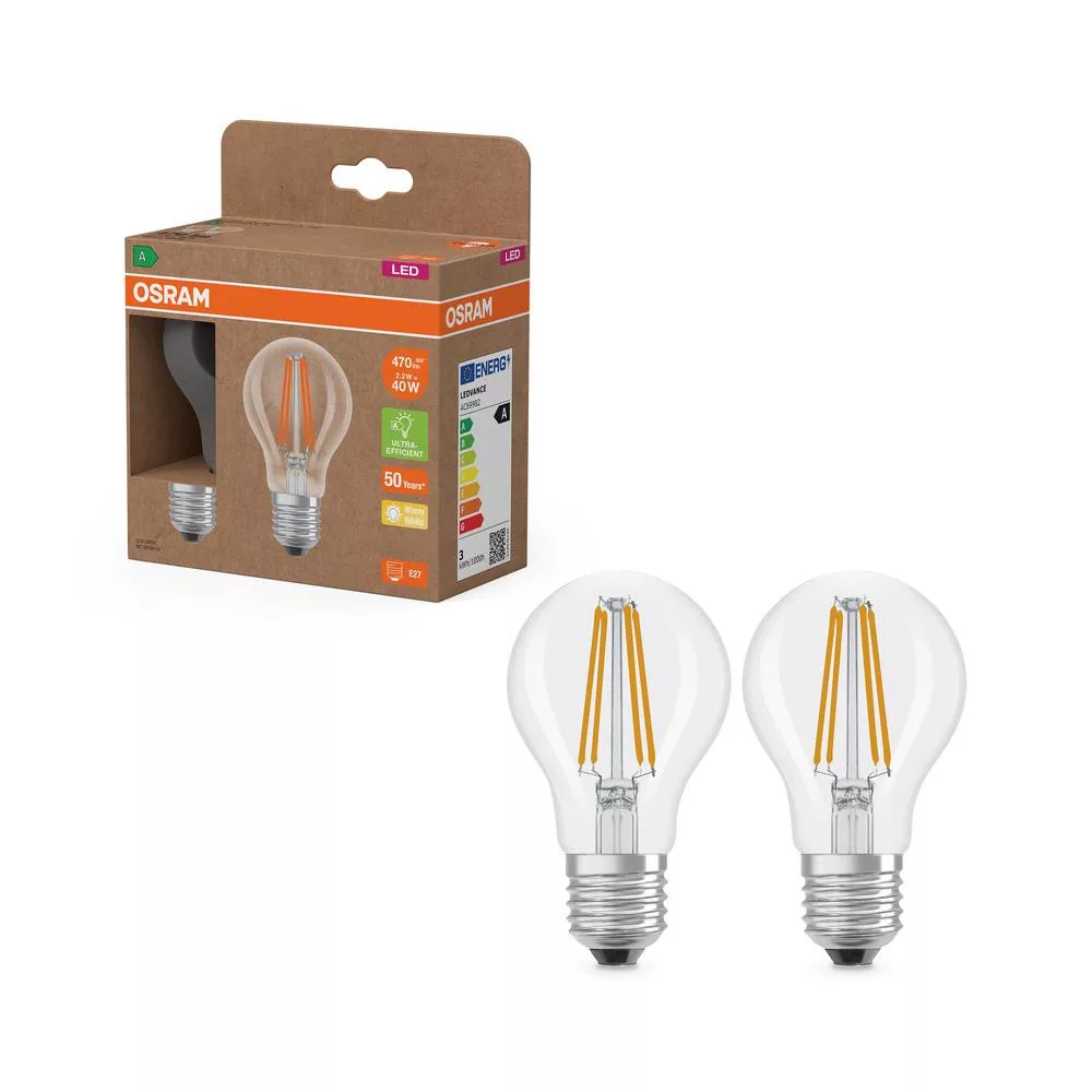 2x LED izzó A60 E27 2.2W = 40W 2700K 470lm Meleg 300° Izzószálas KLASSZIKUS ENERGIAHATÉKONYSÁG Osram