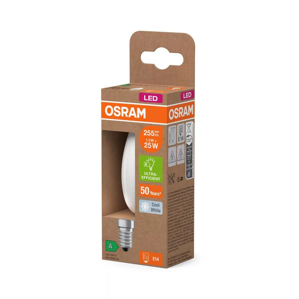 LED izzó B35 gyertya E14 1.2W = 25W 255lm 4000K Semleges 330° 213lm/W ENERGIA CLASSIC EFFICIENCY Osram