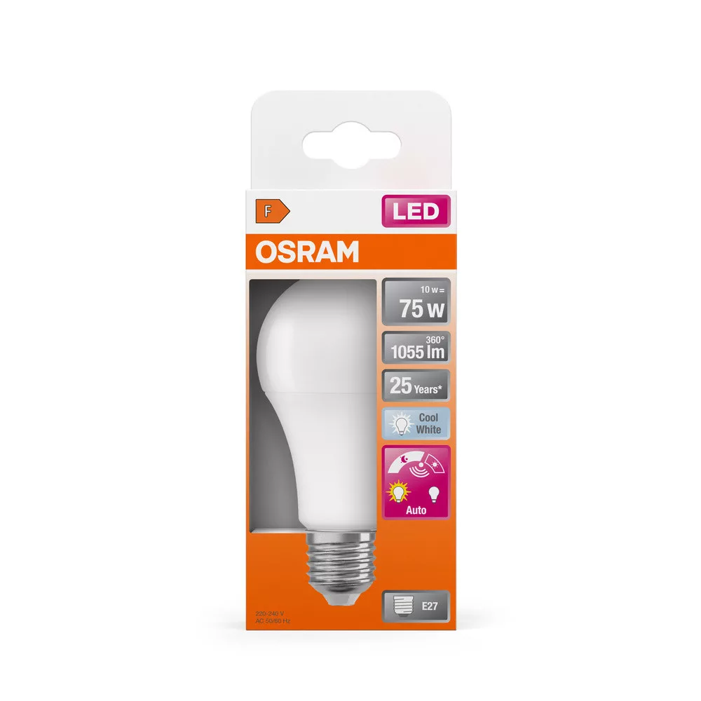 LED izzó A60 E27 10W = 75W 1055lm 4000K Semleges 200° alkonyszenzorral Classic Osram