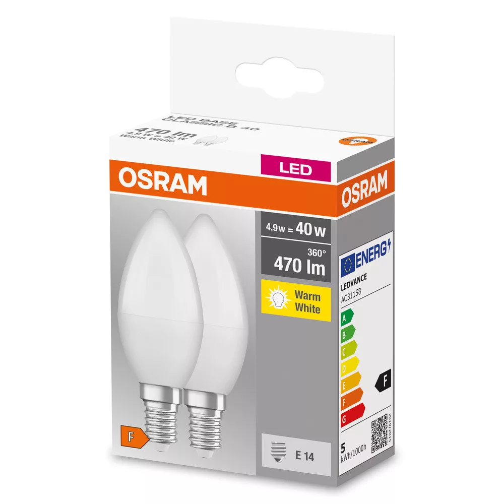 2x LED izzó B37 gyertya E14 4.9W = 40W 470lm 2700K Meleg 200°-os foglalat Osram