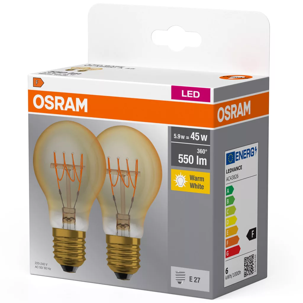2x LED izzó E27 A60 4W = 40W 470lm 2700K Meleg 300° Izzószálas OSRAM