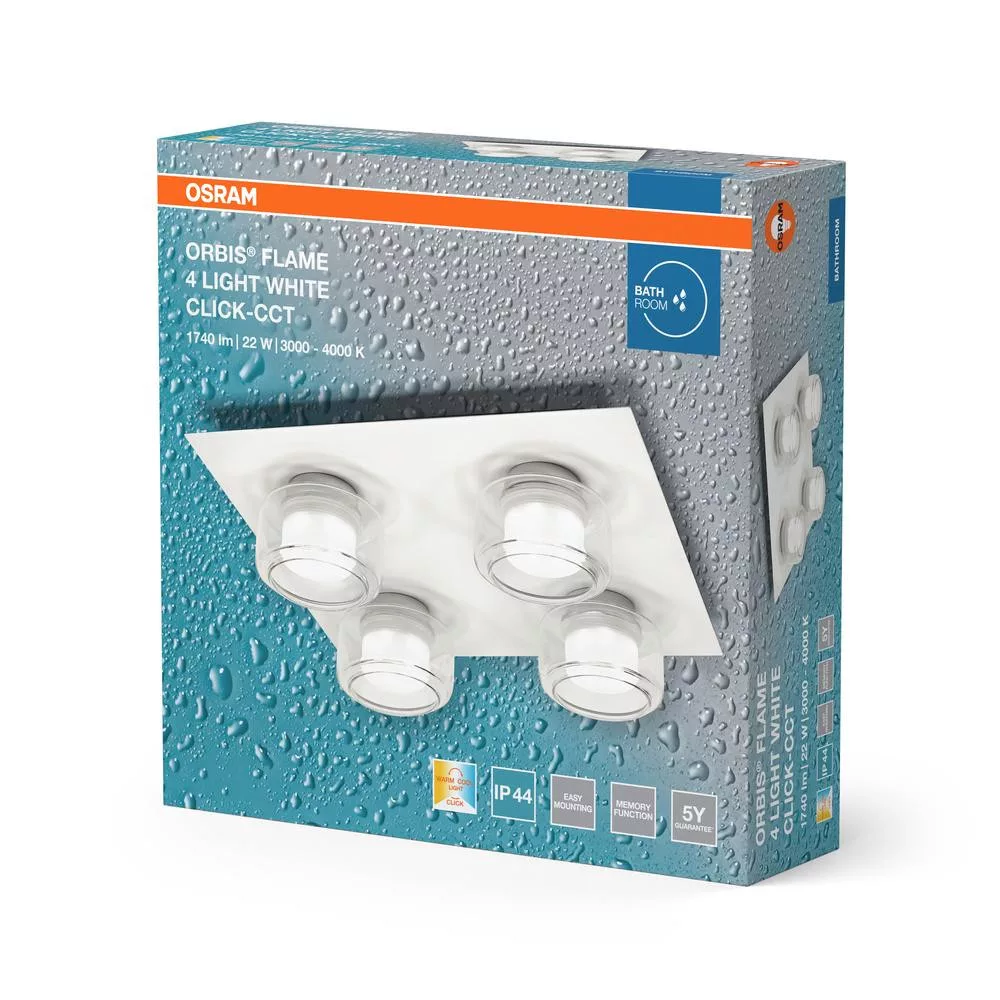 Mennyezeti lámpa, felületre szerelhető spotlámpa, 22W, 1400lm, 3000-4000K, semleges, 115° fehér, IP44, Orbis Flame, Osram