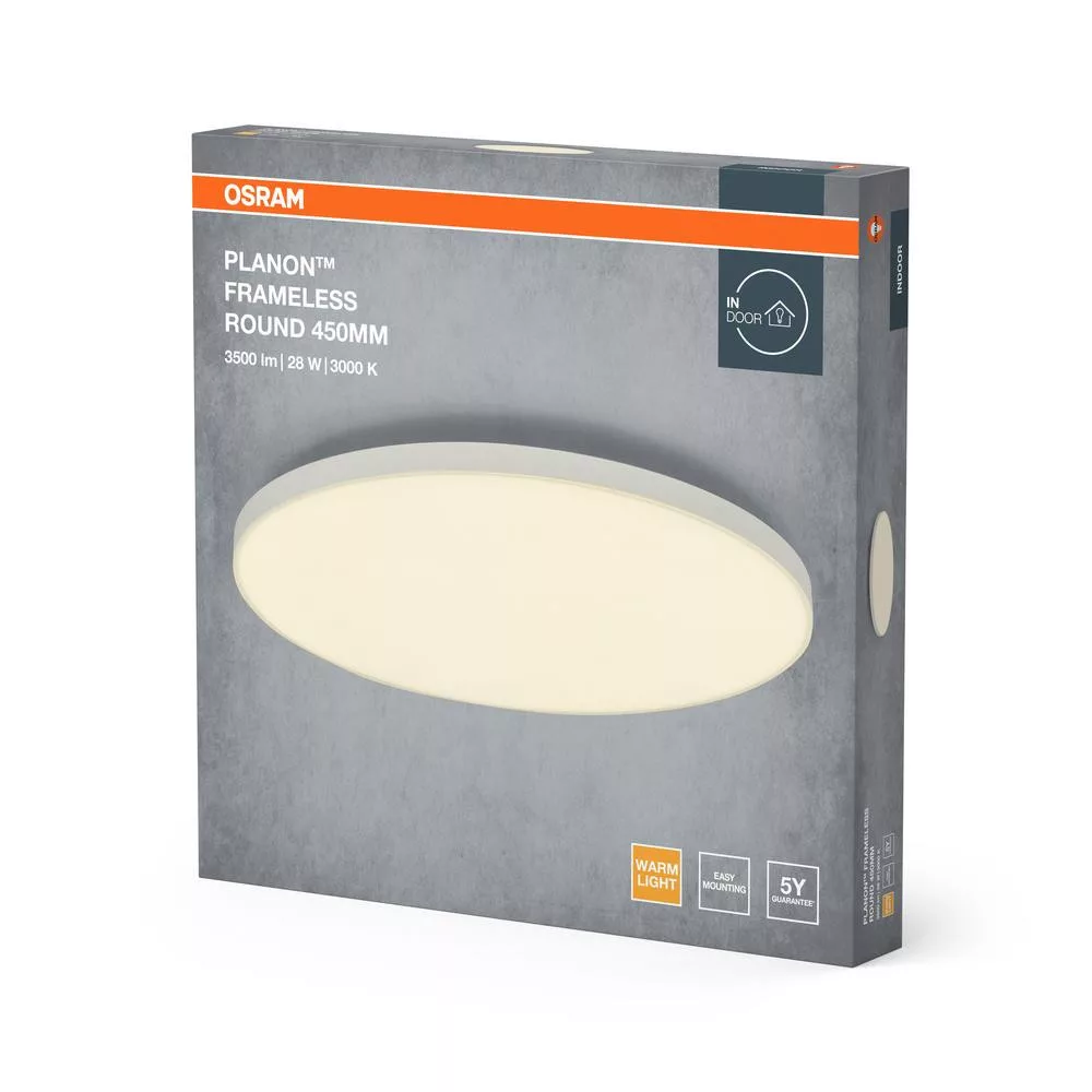 LED mennyezeti lámpa, felületre szerelhető, 28W, 2700lm, 3000K, meleg, 120° fehér, keret nélküli, Osram