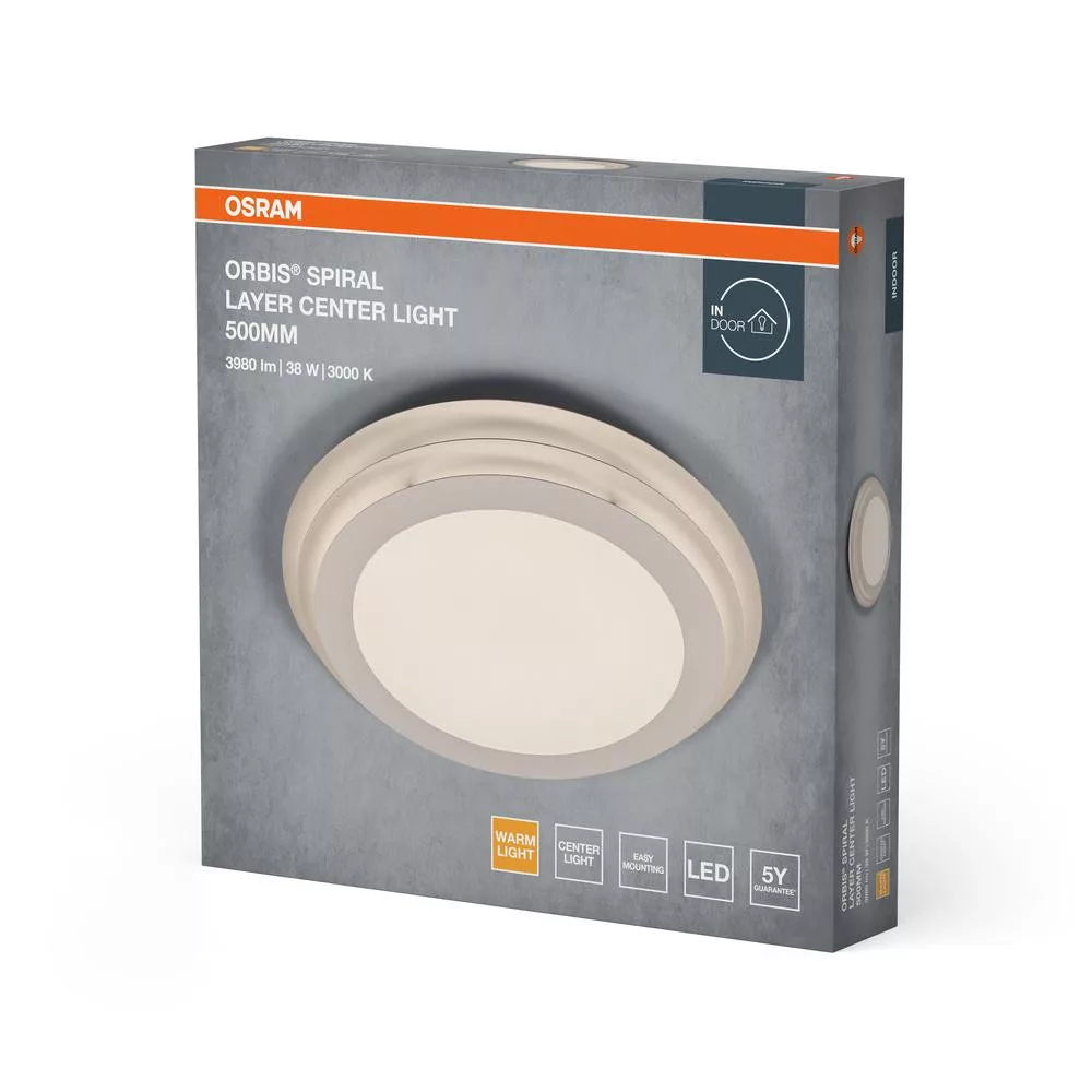 LED mennyezeti lámpa, felületre szerelhető, 38W, 2140lm, 3000K, meleg fehér, Orbis spirálrétegű, Osram