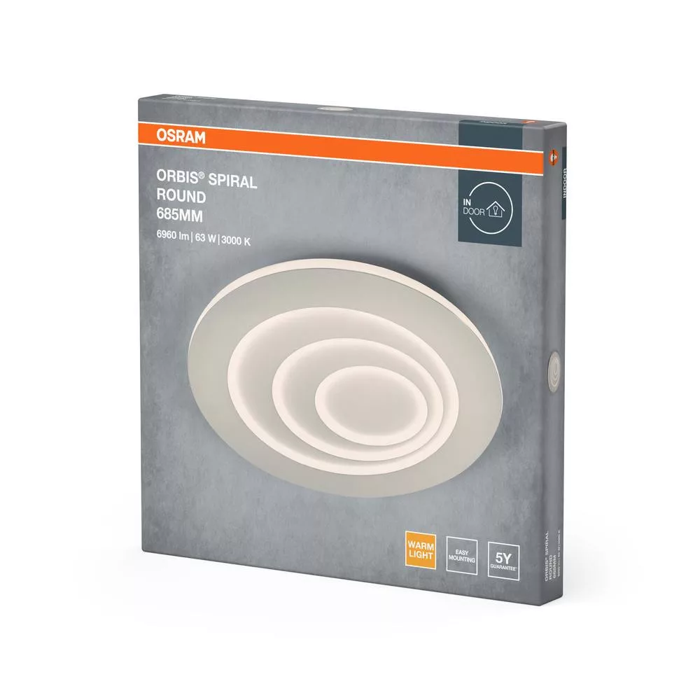 LED mennyezeti lámpa, felületre szerelhető, 63W, 4000lm, 3000K, meleg fehér, Orbis spirál alakú, kerek, Osram