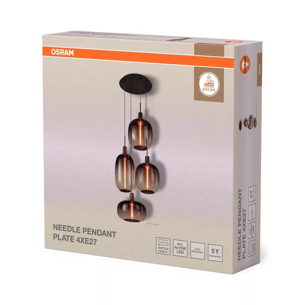 Dekoratív mennyezeti lámpa 4x E27 szürke dekor tűs függőlámpa Osram