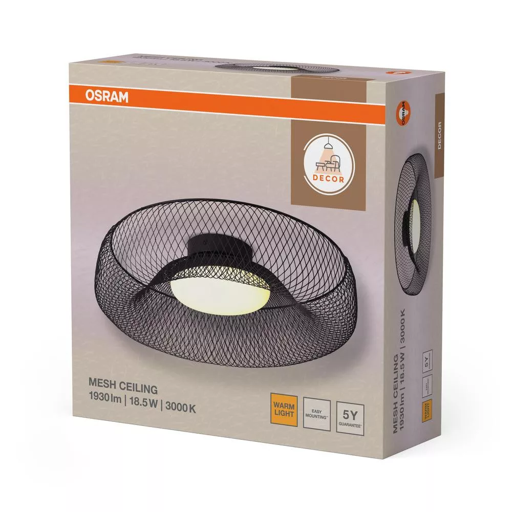 Függesztett mennyezeti lámpa 18,5 W 1130 lm 3000 K meleg 110° fekete dekor háló Osram