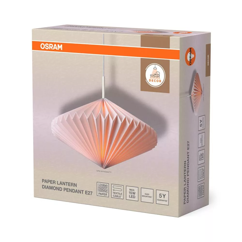 Dekoratív mennyezeti lámpa, E27, fehér, dekorpapír lámpás, Osram