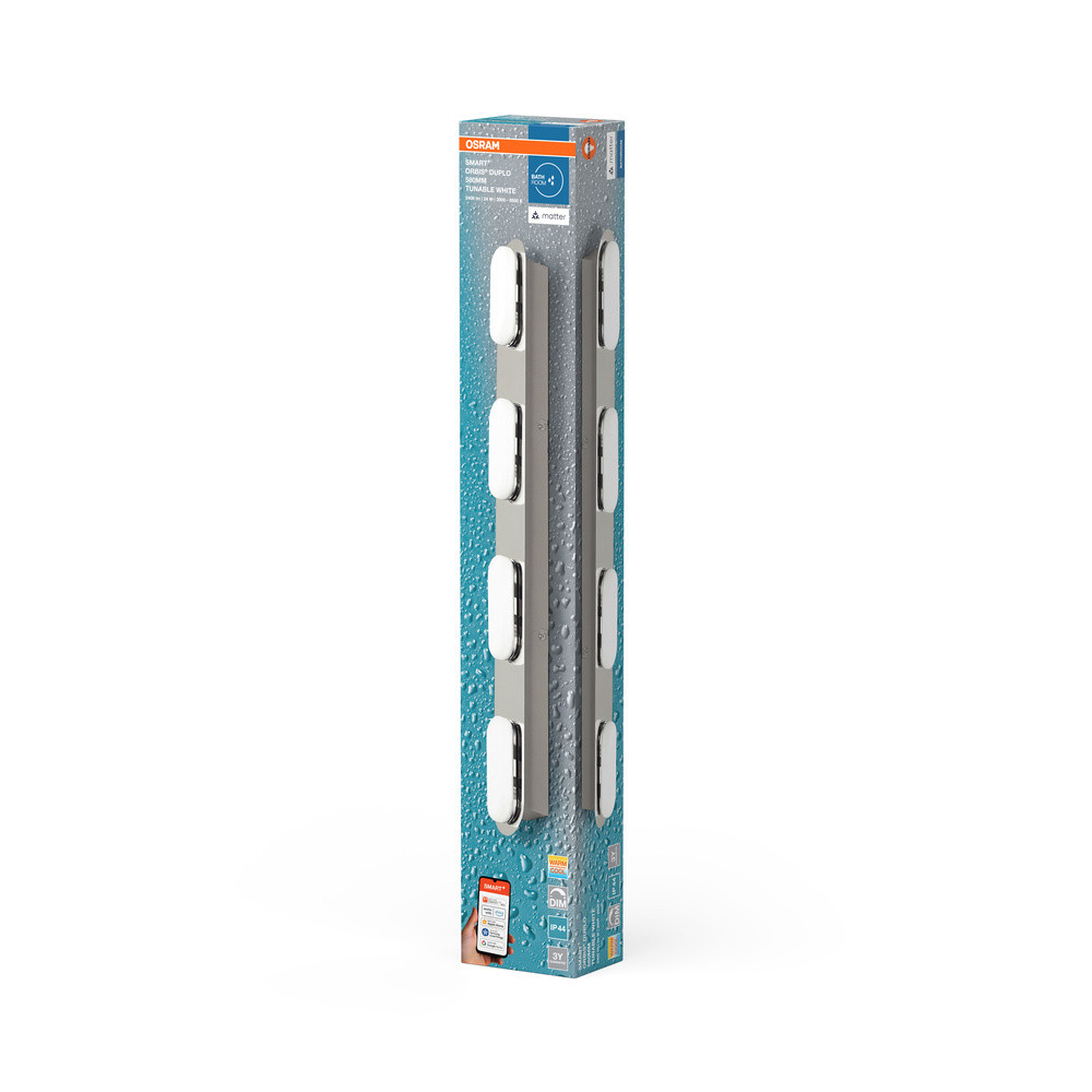 LED fürdőszobai lámpa, felületre szerelhető, 24W, 1900lm, 3000-6500K, CCT, téglalap alakú, ezüst, IP44, Smart+ WiFi, Matter Orbis, Osram