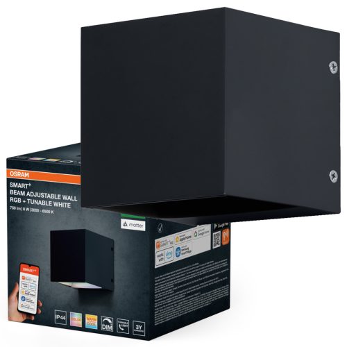Kerti fali lámpa, kültéri LED homlokzati lámpa, 8W, 320lm, 3000-6500K, CCT, RGB, szabályozható fényerejű, fekete, IP44, Osram SMART+ MATTER