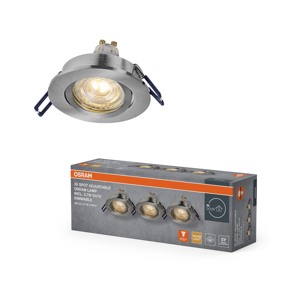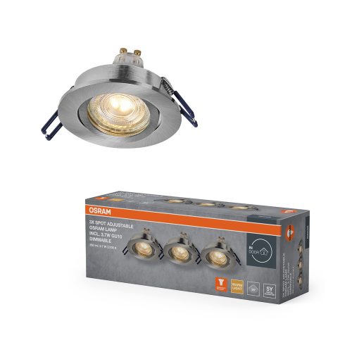 db süllyesztett halogén LED mennyezeti lámpa szett, mozgatható, kerek, szabályozható fényerejű, szatén nikkel, süllyesztett Osram