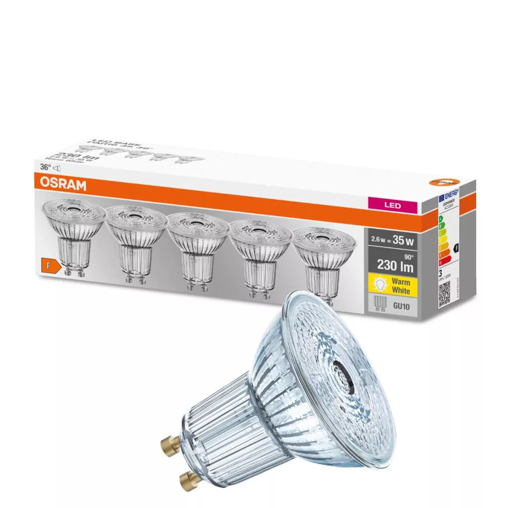 5PAK GU10 LED izzó 2.3W = 35W 230lm 2700K meleg 36° OSRAM alap