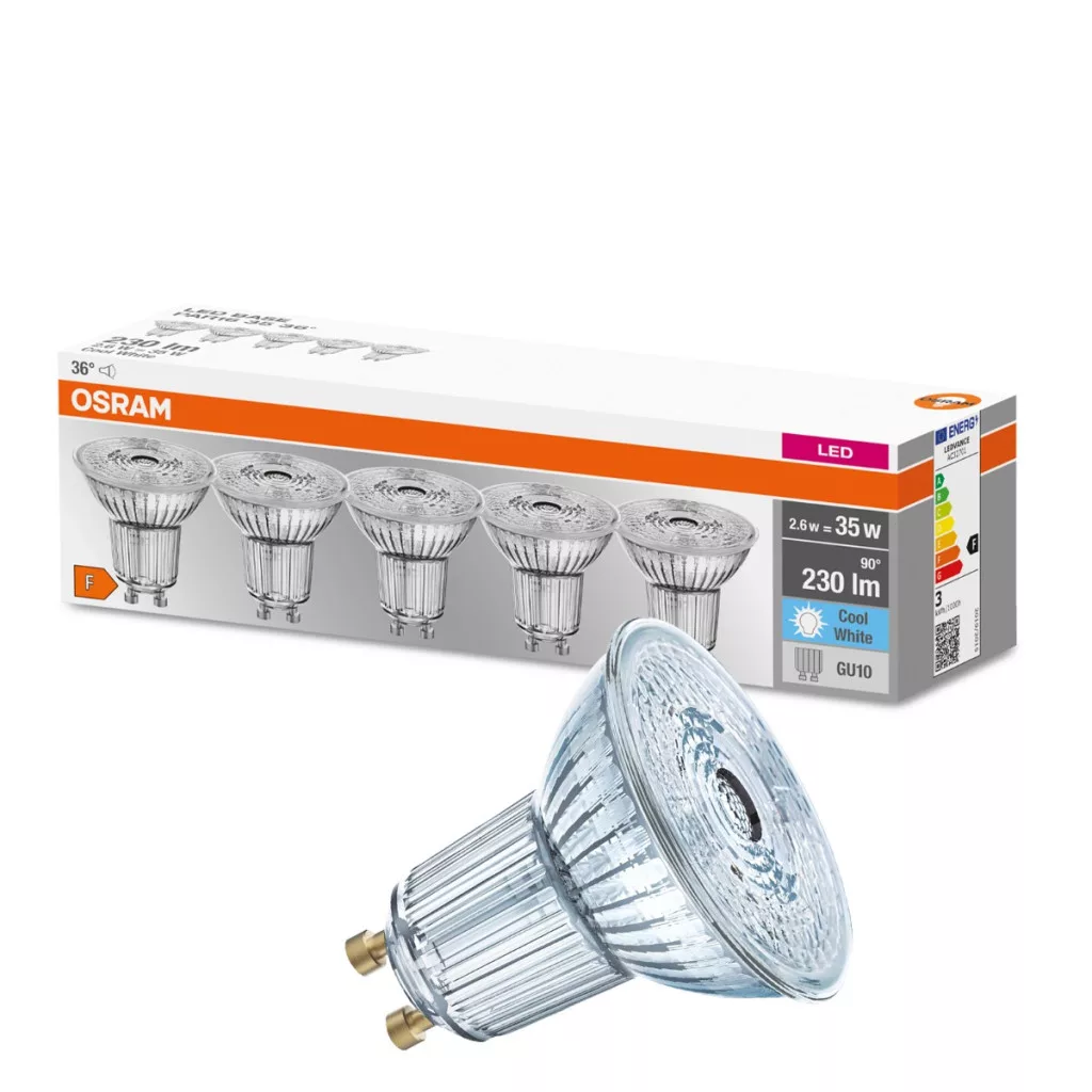 5PAK GU10 LED izzó 2.6W = 35W 230lm 4000K semleges 36° OSRAM alap