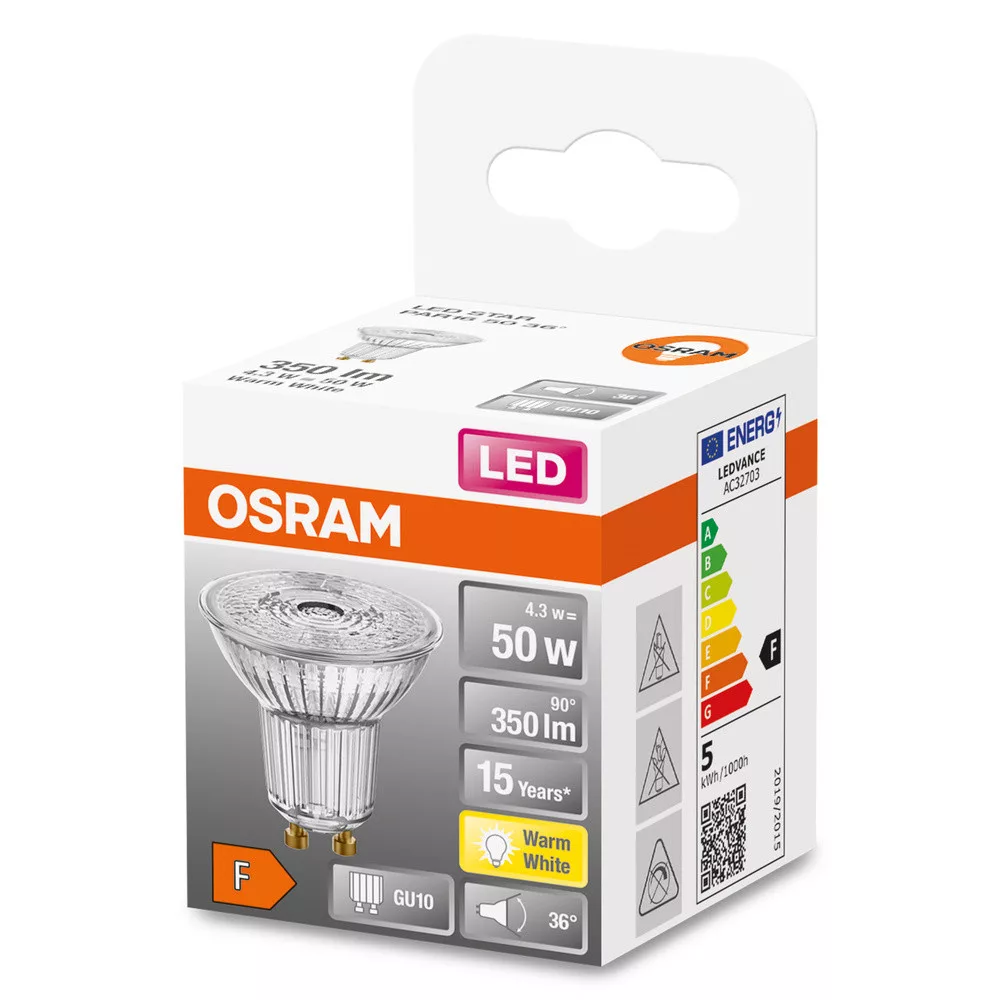 GU10 LED izzó 4.3W = 50W 350lm 2700K 36° OSRAM STAR