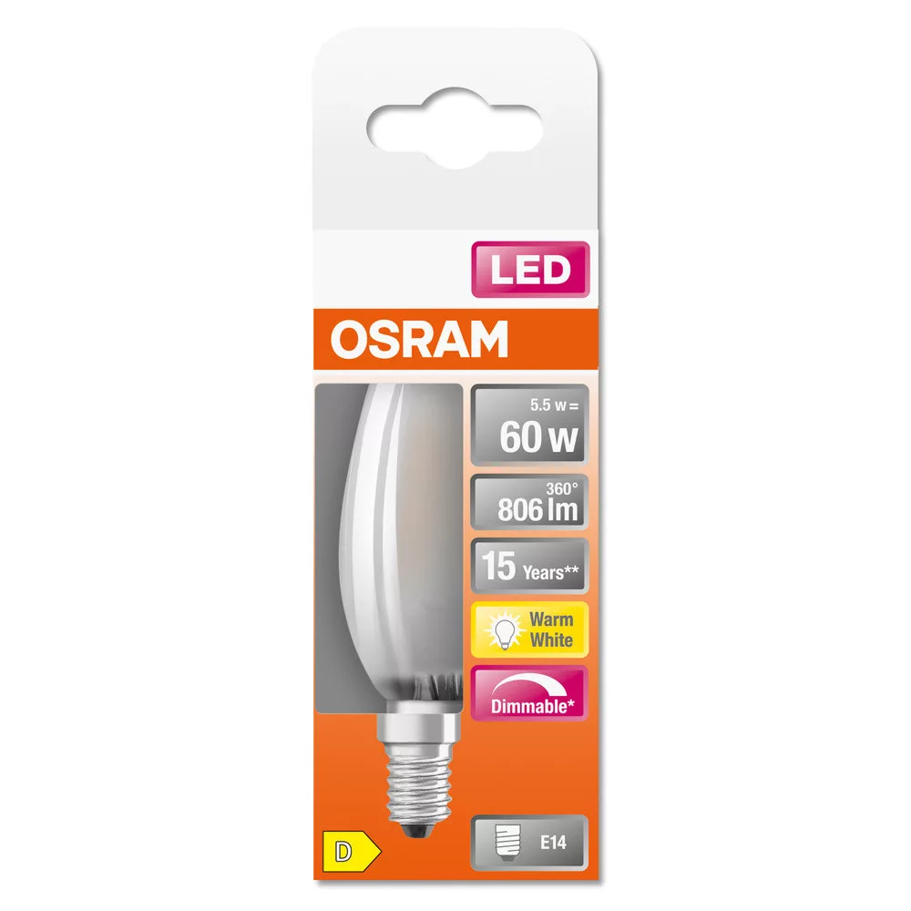 LED izzó E14 B35 5.5W = 60W 806lm 2700K 300° OSRAM SUPERSTAR izzószál szabályozható