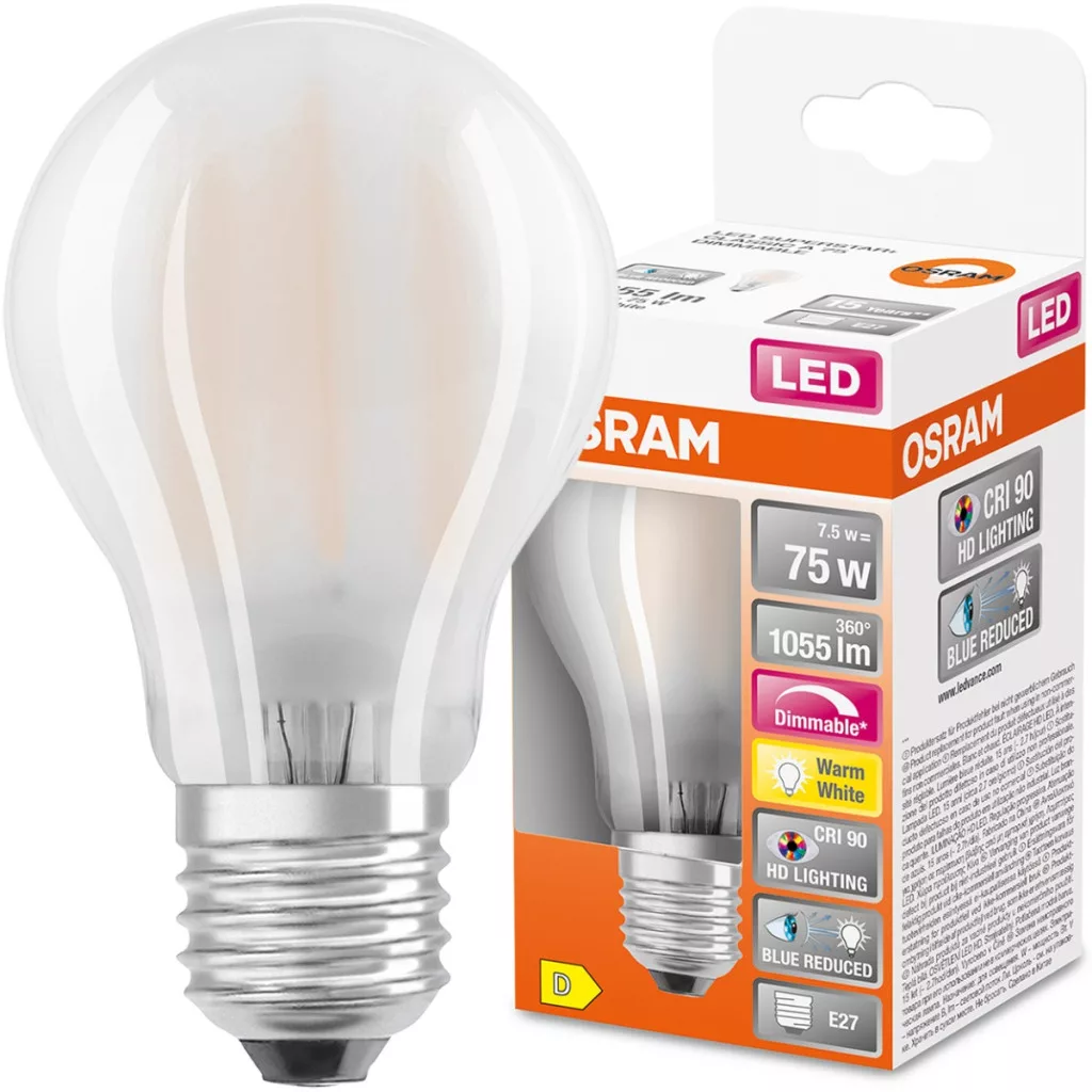 E27 A60 LED izzó 7.5W = 75W 1055lm 2700K 300° CRI90 izzószálas, szabályozható