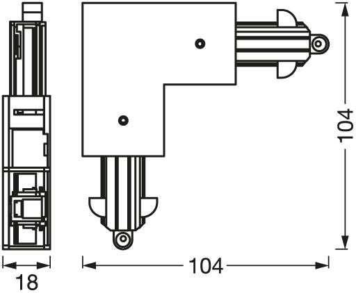 Szögletes csatlakozó belső elektromos csatlakozás fekete Traclight Osram sínekhez