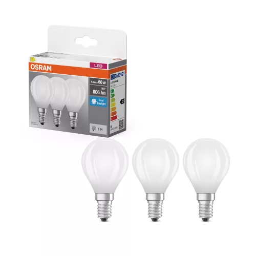 3x LED izzó P45 gömb E14 5.9W = 60W 806lm 6500K Hideg 300° foglalat Osram