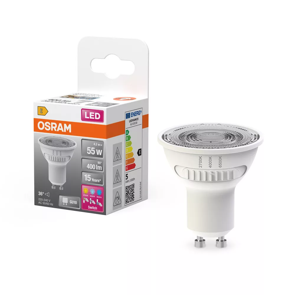 LED izzó PAR16 reflektor GU10 4.2W = 55W 400lm 2700 - 4000 - 6500K CCT 36° SUPERSTAR Osram